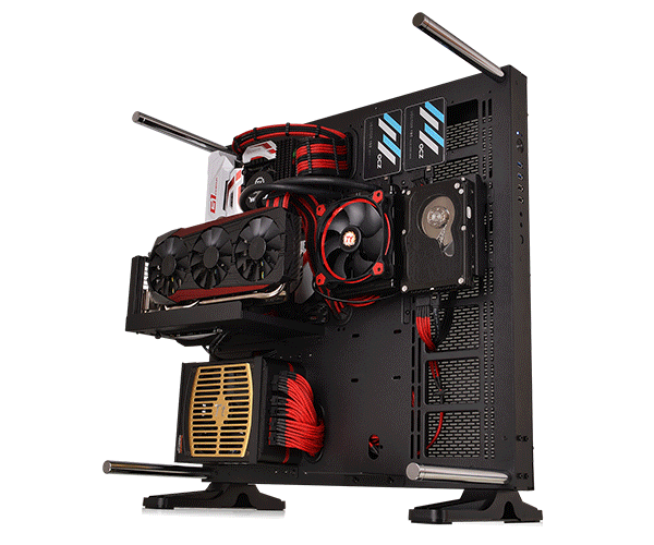 ویژگی ماژولار بودن کیس ها مقوله ای است بس مهم و البته کاربردی که تعداد محدودی از برندها در حال دنبال کردن آن هستند. کیس Thermaltake Core P5 نیز از جمله این محصولات است. این کیس از نظر بصری ظاهری پاناروما دارد و بیشتر بخش های آن از متریال های شفاف تولید شده و قابل رویت هستند. این کیس محصولی نوین در زمینه مود های تخصصی است. کارت گرافیک و واترکولر را به دو صورت متفاوت می توان در آن نصب نمود. این محصول در استاندارد Wall-Mount قرار گرفته و ترمالتیک برای کمک به متخصصان مودینگ، فایل هایی را در اختیار آنها قرار داده است که از وب سایت رسمی آن قابل دریافت است.