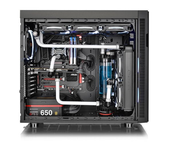 دومین محصولی که موفق به دریافت نشان Red Dot Award در زمینه طراحی شده است، کیس Thermaltake Suppressor F51 است. این کیس نیز در دسته بندی E-ATX Mid-Tower قرار می گیرد. این کیس در زمینه مدیریت نصب حافظه های ذخیره سازی و درایوهای 5.25 اینچ بسیار منعطف است. بسته به نیاز کاربران می توان ساختار کلی آن را تغییر داد. دو فیلتر در پنل جلو، یک فیلتر در قسمت بالای کیس و یک فیلتر هم در محفظه پاور می تواند کمترین گرد و غبار را به داخل کیس وارد سازد. در قسمت مدیریت کیس دو عدد پورت USB 2.0، دو عدد پورت USB 3.0، شاسی های معمول مدیریت توان، رابط های صوتی و یک کنترلر فن تعبیه شده است. این کیس به عایق های صوتی مجهز شده است تا کمترین نویز صوتی را از خود عبور دهد. فن های 120،140 و 200 میلی متری در آن قابل نصب هستند. پشتیبانی از واتر کولرهایی با رادیاتورهای تک، دو و سه گانه نیز امکان پذیر است. در قسمت جلو می توان از رادیاتورهای 360 و 420 میلی متری بهره جست. در کابینت بالا نیز همین آرایش قابل اجرا است. یک رادیاتور 120 میلی متری را می توان در قسمت عقب کابینت راه اندازی کرد و فن های 120 و 240 نیز در محفظه پایین قابل نصب هستند. در نهایت برای تقویت تهویه حتی می توان یک فن 120 و یا 140 میلی متری را بر روی درب ست چپ نصب نمود.