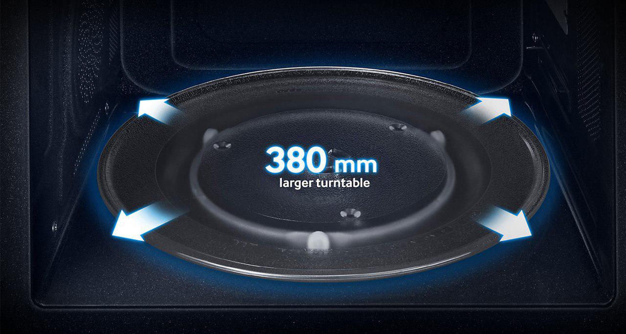 مدل SAMI14 سامسونگ مجموعهای تمام نشدنی از نوآوریهاست. در حالت عادی قطر سینی چرخان این مایکروفر تا 380 میلیمتر افزایش داده شده و این یعنی شما میتوانید حتی یک پیتزای خانواده را هم به راحتی در خانه خودتان آماده کنید.