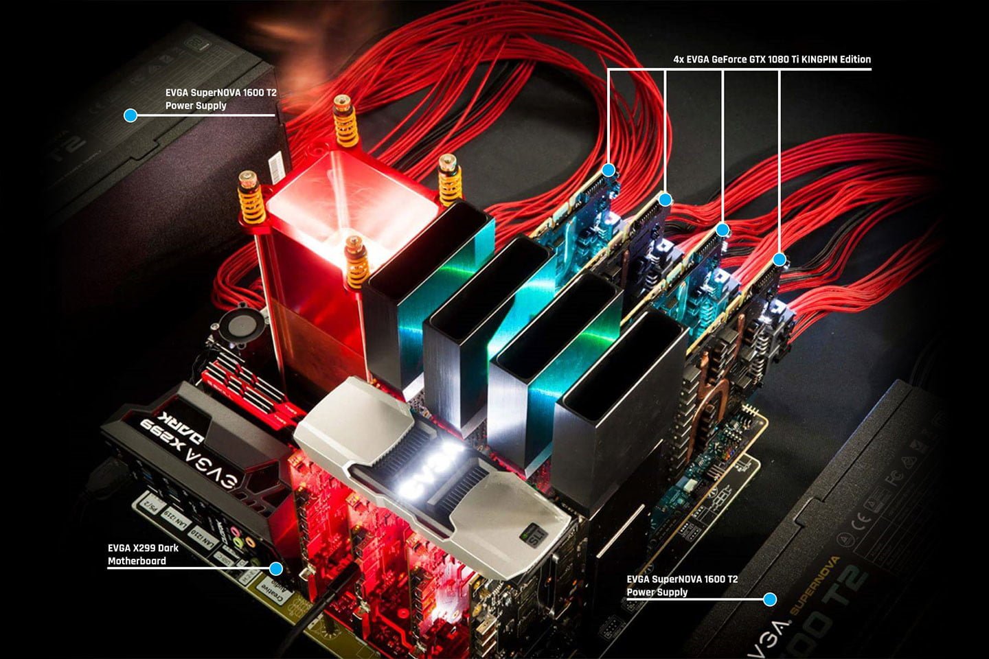 افزون بر تمامی این موارد، کارت گرافیک EVGA GeForce GTX 1080 Ti K|NGP|N نیز تا فرکانس بیش از 2.3 گیگاهرتز اورکلاک شده است. با این ترکیب کم نظیر از سخت افزارهای اورکلاک شده ی EVGA، امتیاز 3D Mark Time Spy به رقم باورنکردنی 37596 رسید. این رکورد جهانی توسط اورکلاکر Vince “K|NGP|N” Lucido و سخت افزارهای EVGA به ثبت رسیده است. در نهایت می توان به منبع تغذیه EVGA SuperNOVA 1600 T2 نیز اشاره کرد که تامین انرژی را در این مراسم بر عهده داشت. دیگر امتیازهای بدست آمده به شرح زیر هستند: