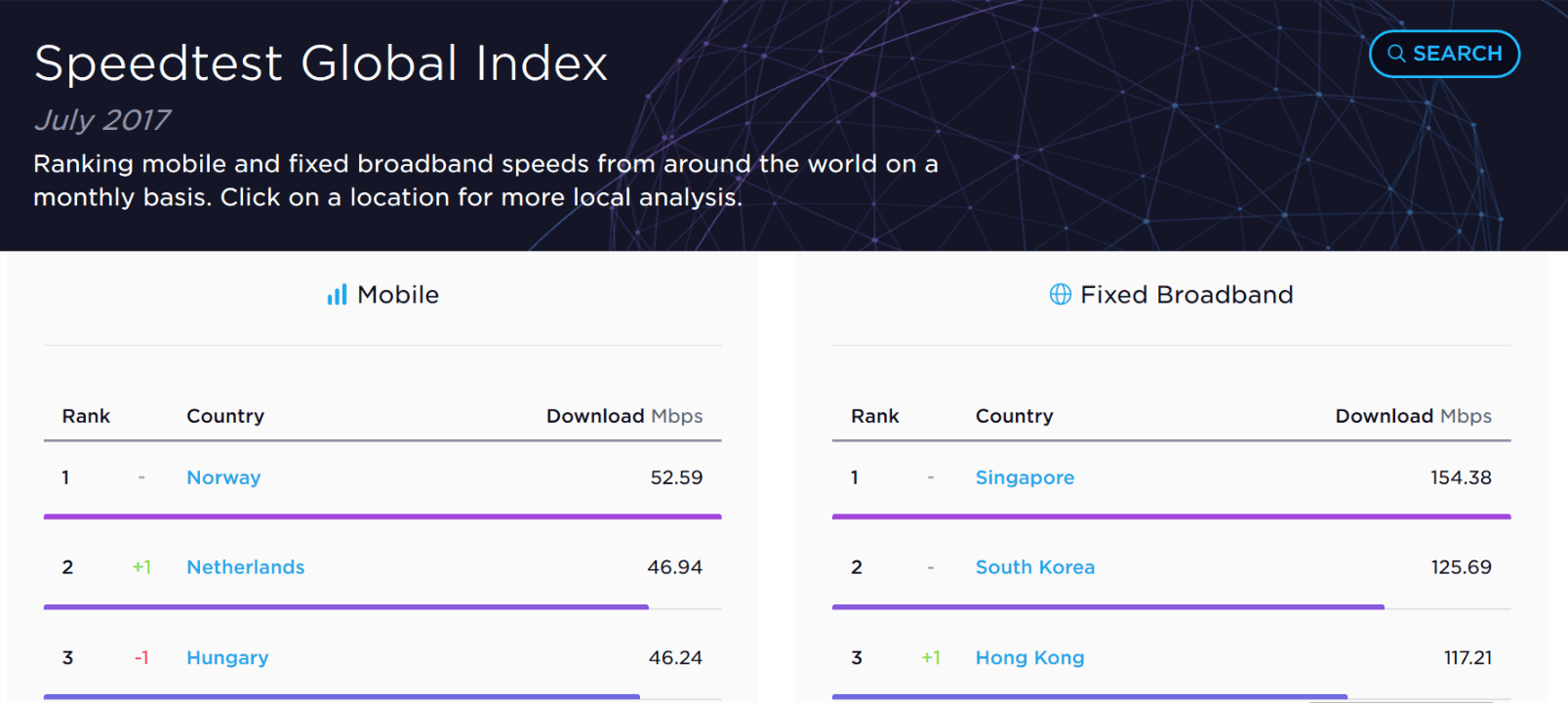 کاربرانی که از به صورت حرفه ای از اینترنت استفاده می کنند بدون شک با وب سایت Speedtest آشنا هستند. یک مرجع بسیار معتبر برای ارزیابی سرعت اینترنت که کاربرانی بین المللی در سراسر جهان دارد و به همین دلیل رده بندی های ارائه شده در آن با دقت بسیار بالایی تنظیم می شوند. Speedtest به جز سنجش سرعت اینترنت و نمایش سرعت دانلود، آپلود و پینگ شبکه کاربران سرویس های متنوع دیگری نیز دارد که یکی از آنها رده بندی کشورهای جهان بر اساس سرعت اینترنت ثابت و اینترنت موبایلی آنهاست. این وب سایت اخیرا جدیدترین رده بندی خود را در هر دو زمینه منتشر کرده است.