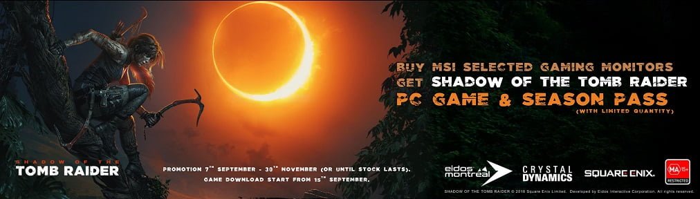 در این طرح که از تاریخ 7 سپتامبر تا 30 فوریه آغاز می گردد، مانیتورهای Optix MAG و MPG به همراه یک کلید Steam برای بازی Shadow of the Tomb Raider به فروش می رسند. این مانیتورها شامل مدل های MAG24C, MAG241C, MAG241CR, MAG27C, MAG27CQ, MAG271C, MAG271CR و سری Optix MAG از جمله MPG27C و MPG27CQ می شوند. همانطور که می بینید، طیف عظیمی از مانیتورهای مخصوص بازی این شرکت در این طرح حضور یافته و کاربران می توانند به سادگی برترین انتخاب ها را از این لیست به همراه داشته باشند. شایان ذکر است که به محدودیت هایی که می دانید، هنوز نمی دانیم که این طرح در ایران نیز اجرایی خواهد شد یا خیر.