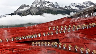 چرخش کیهانی و گشتن موج های بزرگ در مخزن عظیمی از گازهای داغ درخشان در این تصویر اشعه اکس که توسط رصدخانه چاندارا ثبت شده است، قابل ترسیم است. قاب تصویر بیش از یک میلیون سال نوری گستردگی دارد و از نزدیکی مرکز خوشه کهکشانی برساووش که 240 میلیون سال نوری از زمین فاصله دارد، عبور میکند. مانند دیگر خوشه های کهکشانی، بیشتر جرم قابل مشاهده از خوش برساووش به شکل گاز خوشه پرکن است. با درجه حرارتی در حدود ده ها میلیون درجه، گازها به روشنی در اشعه اکس میدرخشند. شبیه سازی کامپیوتری می تواند جزئیاتی از ساختار مسیر گردش گازهای داغ در کهکشان برساووش را قابل مشاهده کند که شامل خلیج مقعری که در پایین سمت چپ تصویر است نیز می شود. در حدود 200,000 سال نوری گستردگی این موج است، یعنی دوبرابر اندازه کهکشان راه شیری. ساختار این موج نشان میدهد که برساووش به احتمال زیاد توسط یک خوشه کهکشانی کوچکتر، میلیاردها سال پیش بلعیده شده است.