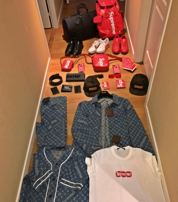 او برای گشت و گذار با این خودروی لوکس خود، مجموعه از کیف، کتونی، کلاه و.. با نام های تجاری Louis Vuitton و Supreme تهیه کرده است.