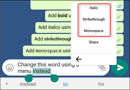 کافیست شما گزینه مورد نظر خود را انتخاب کنید تا حالت ها به طور خودکار اعمال شوند. سپس روی ارسال کلیک کنید تا پیام شما قالب بندی شود.