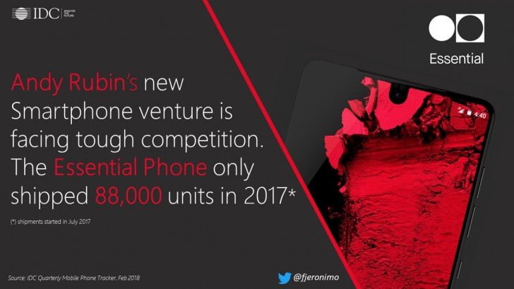 با این وجود به نظر میرسد که وضعیت گوگل در فروش گوشی از اسنشال فون خیلی بهتر است. به نقل از IDC اندی رابین خالق اندروید که با امیدهای بسیاری تصمیم به ساخت گوشی اسنشال با نام PH-1 گرفت، موفق شد تنها 88000 از این گوشی را در سال 2017 به فروش برساند. این آمار قطعاً چیزی نیست که ارزش جشن گرفتن داشته باشد، اما به یاد داشته باشید که PH-1 اولین محصول یک استارتاپ است. علاوه بر این اسنشال فون با مشکلاتی در زمینه تحویل گوشی ها به مشتریان دست و پنجه نرم کرد که این موضوع هم آمار فروش گوشی را تحت تأثیر قرار داد. با این حال این شرکت امیدوار است که در سال جدید عملکرد بهتری داشته باشد و بتواند به جایگاهی که شایسته آن است، دست یابد.