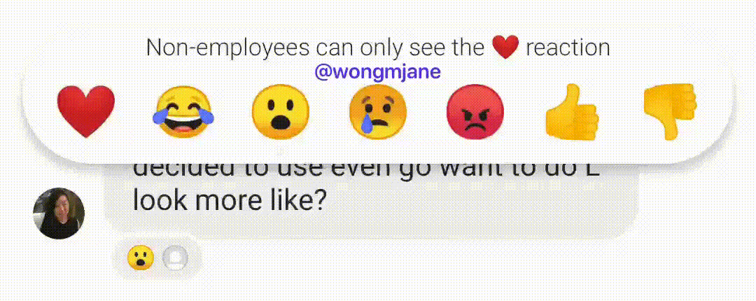 جدیدترین قابلیتی که در آینده نزدیک به شبکه اجتماعی اینستاگرام افزوده خواهد شد، ریاکشن به مسیجها میباشد. این خبر توسط Jane Wong منتشر شده که با توجه به سابقهاش، یکی از منابع قابل اعتماد در زمینه اخبار مرتبط با قابلیتهای جدید به حساب میآید. البته به جز Wong این اخبار توسط Alex Voica مدیر ارتباطات فناوری فیسبوک نیز تایید شده است. این قابلیت جدید در حال حاضر توسط کارمندان و سازندگان مربوط در حال آزمایش است و دیگر افراد تنها ریاکشن سابق یعنی امکان لایک کردن (اضافه کردن قلب) مسیجها را دارند. با این حال، انتظار میرود بعد از انتشار قابلیت جدید 6 ریاکشن دیگر هم به حالت کنونی اضافه شود.