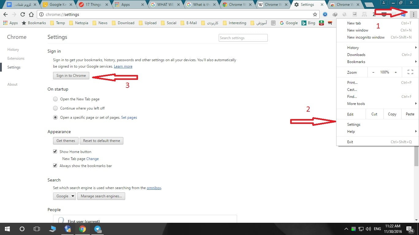در اینترنت و دنیای مجازی روال کار اینگونه است که اگر میخواهیم از خدمات یک شرکت یا سایت یا یک نرم افزار بیشترین استفاده را بکنیم باید در آن ها یک حساب کاربری داشته باشیم. روش کار گوگل هم بر همین منوال است. شاید شما بدون داشتن جیمیل بتوانید از موتور جستجوی گوگل استفاده کنید ، اما از بسیاری ازخدمات خوب گوگل محروم خواهید ماند. اگر تاکنون برای خودتان جیمیل نساخته اید و یا تنها از سرویس ایمیل شرکت های دیگر استفاده میکنید همین الان اقدام به ساختن یک جیمیل برای خودتان کنید. بعد از نصب گوگل کروم، اگر میخواهید به راحتی از این نرم افزار استفاده کنید، و از خدمات و ویژگی های خوب آن برخوردار شود باید اکانت جیمیل خود را به این نرم افزار متصل کنید. شما به راحتی میتوانید این کار را انجام دهید، از منوی options به setting رفته و در صفحه ای که باز میشود گزینه sign in to chorme را بزنید و اکانت گوگل خود را وارد نمایید.