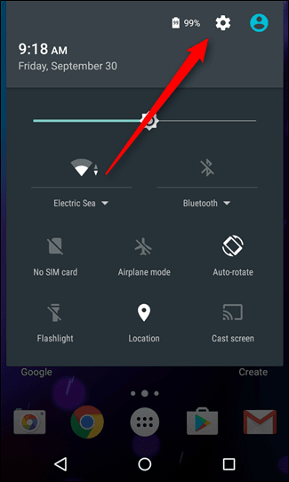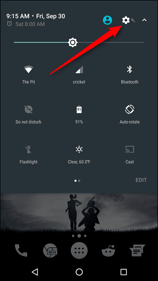 در اندروید Nougat ، کاربران می توانند تنظیم default launcher را در کنار سایر تنطیمات حالت پیش فرض دستگاه پیدا نمایند. این تنظیم در نگاه اول ساده به نظر می رسد اما در صورتی که با اندروید 7 آشنایی نداشته باشید نمی توانید در نگاه اول این تنظیم را پیدا نمایید.برای این کارابتدا  وارد منوی Settings شوید. بدین منظور نوار نوتیفیکیشن را دو بار به پایین کشیده و آیکن چرخ دنده را لمس نمایید.