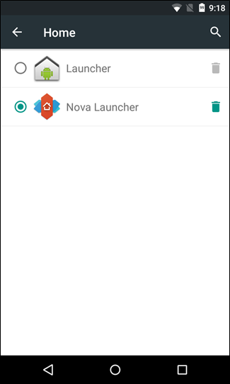 در منوی Home یک بخش فوق العاده برای انتخاب نرم افزار لانچر و حذف لانچر وجود دارد. آیکن حذف در کنار لانچر پیش فرض همیشه خاکستری رنگ است و یا در نسخه های مختلف اندروید ممکن است وجود نداشته باشد و کاربران نمی توانند لانچر پیش فرض را حذف نمایند. نام لانچر پیش فرض نیز بر اساس نسخه اندروید ممکن است TouchWiz ، Google Now Launcher ، Launcher و… باشد.