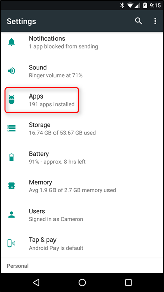 صفحه را به پایین پیمایش کرده و گزینه Apps را انتخاب کنید سپس آیکن چرخ دنده در بالا سمت راست را لمس کنید.