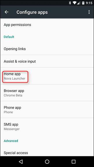 با اندکی پیمایش در صفحه گزینه Home app را مشاهده خواهید کرد که با استفاده از آن می توانید لانچر را تغییر دهید.