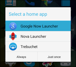 برای حذف پیش فرض بودن این لانچر Clear defaults را لمس کنید. سپس دکمه home را فشار دهید.پس از انتخاب لانچر می توانید با انتخاب Always آن را به صورت پیش فرض در آورده یا با انتخاب Just once یک باز از آن استفاده نمایید.