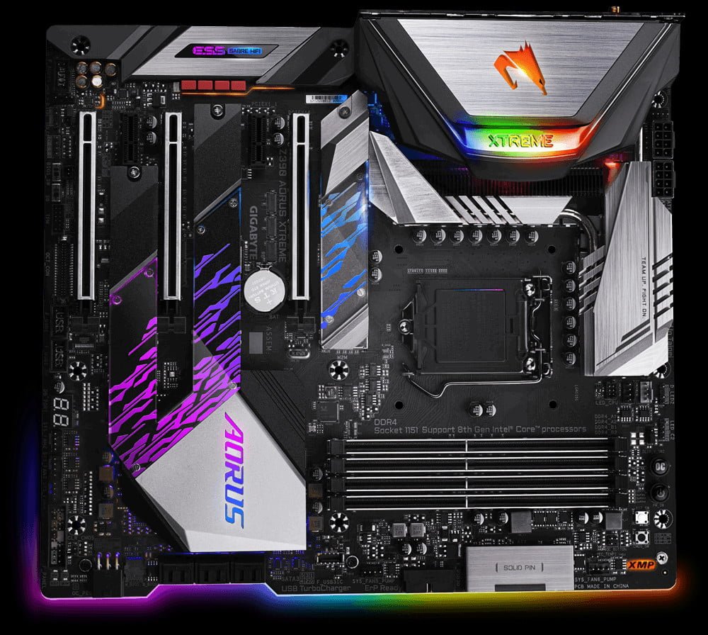 و در نهایت گیگابایت نیز از یک مادربرد پرچمدار و ویژه خود با نام GIGABYTE Z390 AORUS XTREME رونمایی کرد. این مادربرد با چیپست Z390 میزبان نسل نهم پردازنده های اینتل (Core I 9000) است. این مادربرد توسط یک مدار با 16 فاز رگولاتور تغذیه شده و دارای ویژگی های فراوانی است که آن را برازنده نام یک پرچمدار می کند. شبکه پر سرعت مورد استفاده در آن از نوع Aquantia LAN با پهنای باند 2.5 گیگابیت است.