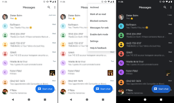 در مطالب قبل اشاره کردیم که گوگل برنامه پیام رسان اندروید را بروزرسانی خواهد کرد و در بروزرسانی اخیر از وضعیت Dark Mode نیز پشتیبانی می کند. اما اخیرا با خبر شدیم که گوگل این بروزرسانی را لغو کرده است. در گزارشات اینطور بیان شده بود که گوگل در حال توسعه یک نسخه ی جدید از پیام رسان اندروید است و به زودی آن را در اختیار کاربران قرار می دهد. همچنین اشاره شد که در این بروزرسانی ها تغییرات ظاهری و امکانات پیشرفته تری ارائه خواهد شد. نکته ی جالب این پیام رسان اندروید، ارائه ی وضعیت Dark Mode به صورت پیش فرض بود که نظر بسیاری را به خود جلب کرده بود. اما اکنون این بروزرسانی غیر فعال شده و وضعیت پیام رسان به حالت قبلی بازگشته است. ظاهرا این بروزرسانی ها از سوی سرور بود و گوگل به راحتی آن را لغو نمود.