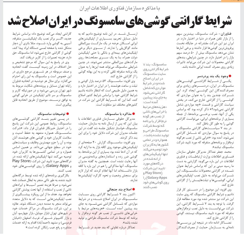 چندی پیش در رسانه خبری با این مضمون منتشر شد که گوشیهای گلکسی سامسونگ در صورتی که از مارکتهای ایرانی برنامهای دانلود کنید، دیگر دارای گارانتی نخواهند بود. حالا به نظر میرسد که سامسونگ با پیگیری سازمان فناوری اطلاعات این قانون خود را تغییر داده است.