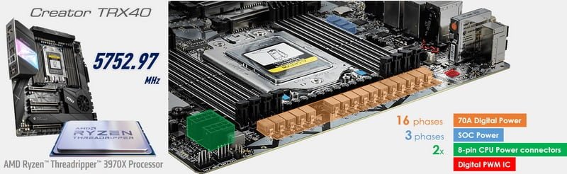 ترکیب ویژگیهای مذکور عملکردی فوقالعاده را به دنبال دارد که باعث میشود یک سیستم بر پایه رایزن تریدریپر نسل سوم با یک مادربرد چیپست TRX40 انتخابی بی نظیر برای کاربران حرفهای خصوصا تولیدکنندگان محتوا باشد. اماسآی به عنوان یکی از سازندگان برتر مادربرد، مدلهایی را با این چیپست ارائه داد که توانایی ارائه حداکثر پتانسیل پردازندههای نسل سوم رایزن تریدریپر AMD را دارا هستند. MSi Creator TRX40 برترین مادربرد این سازنده در پلتفرم TRX40 است که با همراهی پردازنده 3970X موفق به کسب امتیاز چشمگیر 17632 در پردازش چند هستهای شده است.
