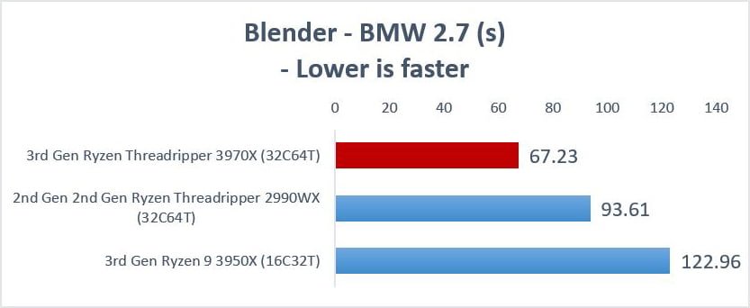 همچنین در تست بنچمارک BMW 2.7 و V-Ray نیز پرچمدار TRX40 شرکت اماسآی و پردازنده رایزن تریدریپر 3970X با عملکردی فوقالعاده رقیبان را پشت سر گذاشتهاند.