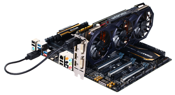 به وسیله یک پورت DisplayPort می توان خروجی تصویر کارت گرافیک (به مانند تصویر) را به مادربرد انتقال داد.عدم پردازش مجدد کنترلر می تواند اولین مزیت این عمل باشد.پس از آن به دلیل توانایی پورت های USB-C در انتقال تصاویر،می توان به طور کلی 6 دستگاه دیگر را تغذیه کرد.بدین ترتیب پیکر بندی نمایشگرهای متعدد نیز بسیار آسان خواهد شد.لازم به ذکر است که موارد اعلام شده در بالا تنها بخشی از کاربردهای پورت Thunderbolt 3 هستند.ترکیب پورت Thunderbolt 3 در کنار چیپست X99 می تواند انعطاف بالایی را برای مادربرد به ارمغان بیاورد.