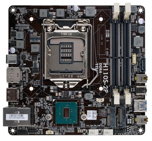 اولین محصولی که اطلاعات چندانی نیز از آن منتشر نشده است،یک مادربرد کوچک،در کلاس احتمالی mini-ITX/STX است.این مادربرد پذیرای پردازنده های نسل ششم اینتل بوده و از یک چیپست H110 بهره می برد.دو اسلات حافظه ی رم بر روی آن وجود دارد که ظاهرا از ماژول های SO-DIMM پذیرایی می کند.این ماژول ها از استاندارد DDR4 خواهند بود.از آنجایی که در هر دو سوی مادربرد پورت های مستقیم I/O مشاهده می گردد،می توان نتیجه گرفت که این مادربرد کوچک در مینی کامپیوتر و یا سیستم های صنعتی و AIO مورد استفاده قرار می گیرد.دو اسلات مشابه آنچه که حافظه های M.2 NVME بدان نیاز دارند نیز بر روی برد مشاهده می گردد.برای استفاده از ااین مادربرد،نیازی به استفاده از کارت های توسعه PCI-E ندارد.