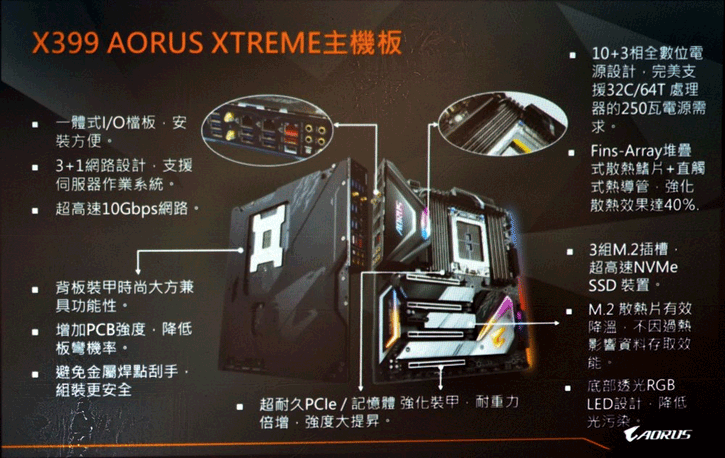 ای ام دی نسل دوم پردازنده های Ryzen Threadripper را با پرچمداری یک مدل 32 هسته ای، در جریان کامپیوتکس 2018 رونمایی کرده و پس از آن نیز اطلاعاتی از این محصولات به صورت پرداکنده، از جمله بنچمارکها، در رسانه های سخت افزاری منتشر شد. اینک شرکت گیگابایت در یک نشست به معرفی مادربردی پرداخته است که به طور تخصصی برای این دسته از پردازنده ها آماده شده است. این مادربرد با نام Gigabyte X399 AORUS XTREME  شناخته می شود.