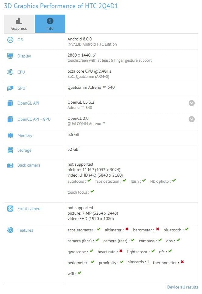 این تمام اطلاعاتی نیست که از گوشی HTC U11 Plus در دسترس است. روز گذشته مشخصات این گوشی در بنچمارک های رویت شد و براساس نتایج آنها، این گوشی دارای یک صفحه نمایش 5.99 اینچی با روزلوشن 1440 × 2880 پیکسل می باشد. پردازنده اسنپدراگون 835 این گوشی با 4 گیگابایت رم و 64/128 گیگابایت حافظه داخلی همراه شده است. دوربین اصلی این گوشی 12 مگاپیکسلی با دیافراگم f/1.7 می باشد، در حالیکه دوربین سلفی آن 8 مگاپیکسلی است. گفته می شود که باتری این گوشی 3930 میلی آمپر ساعتی است و با اندروید 8.0 اوریو عرضه خواهد شد.
