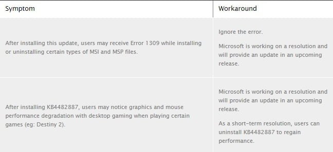 مایکروسافت در ادامه اضافه کرده است که با تست و آزمایش نسخه ی KB4482887، ضمن تائید این مشکل، اعلام داشته اند که کاهش گرافیک در برخی از بازی ها عملا برای برخی از گیمرها اتفاق نیفتاده پس حذف این بروزرسانی برای همگان توصیه نمی شود.