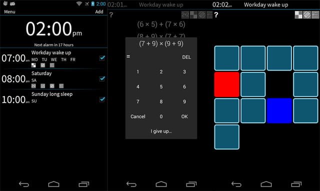 این اپلیکیشن جذاب نوعی Alarm پیشرفته است که با روشی جالب می تواند افراد خواب آلود را از خواب سنگینشان بیدار کند. عملکرد این اپلیکیشن به این صورت است که ابتدا باید ساعت مورد نظرتان را تعیین کنید. سپس برای آن Alarm یک یا چند مرحله بازی در نظر می گیرید و سختی و دشواری بازی ها را تعیین می کنید. در نتیجه زمانی که زنگ هشدار به صدا در بیاید باید بازی هایی که از قبل انتخاب کرده اید را انجام دهید و در صورتی که مراحل را پشت سر گذاشتید می توانید Alarm را قطع کنید.