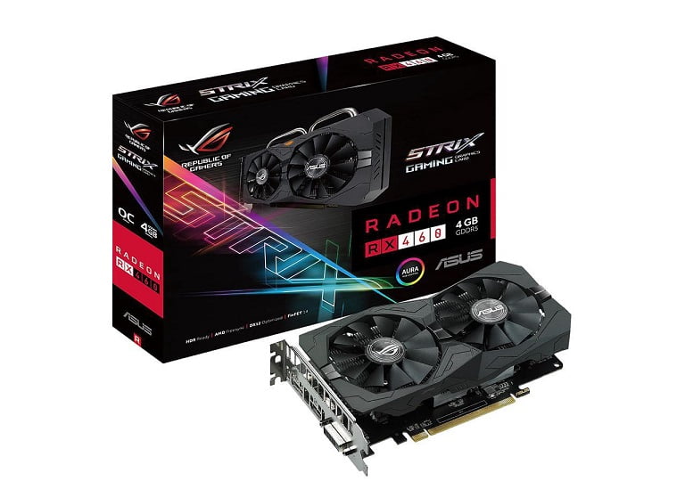 به سادگی نمی توان از خیر کارت گرافیک های جدید ایسوس گذشت؛ به عنوان یک کارت گرافیک ارزان قیمت جهت عملیات های گرافیکی و اجرای بازی ها در سطح متوسط، کارت گرافیک ASUS ROG STRIX RX 460 OC انتخاب مناسبی خواهد بود. این محصول دارای فناوری های اختصاصی از جمله سیستم نورپردازی Aura RGB و Auto-Extreme یا GPU Tweak II است. این کارت گرافیک دارای 4 گیگابایت حافظه GDDR5 است و یک رابط 128 بیتی در فرکانس 7 گیگاهرتز آن را همراهی می کنند. فرکانس هسته در این کارت گرافیک ارزان قیمت به 1256 مگاهرتز می رسد. این کارت گرافیک از مدار فاز با آرایش 4+1 بهره می برد و تغذیه آن از یک رابط 6 پین تامین می گردد. این محصول با قیمتی در حدود 810 هزار تومان عرضه می گردد.
