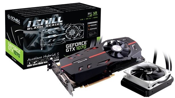 یک GTX1070 خنک و کم صدا می تواند تا مدت های طولانی شما را از شر سر و صدای خنک کننده به همراه نیاز به ارتقاء مصون بدارد. کارت گرافیک Inno3D iChill GTX 1070 Black Hybrid S محصولی با ارزش خرید بالا به نسبت هزینه پرداختی است. این کارت گرافیک از یک سامانه خنک کننده هیبریدی متشکل از یک خنک کننده مایع و دمنده بهره می برد. یک فن 80 میلی متری به همراه یک هیت سینک در بخش مدار تغذیه نصب شده است و GPU نیز از خنک کننده مایع برای تهویه بهره می برد. فن 8 سانتیمتری این محصول بر روی یک هیت سینک غول پیکر قرار گرفته و وظیفه خنکسازی چیپهای حافظه، رگولاتورهای ولتاژ و سایر قطعات الکترونیکی پیرامون خود را بر عهده دارد. این فن در حالتی که کارت گرافیک در فشار نهایی قرار ندارد خاموش خواهد بود. کارت گرافیکی iChill GeForce GTX 1070 Black دارای سه نشانگر اختصاصی با رنگهای آبی، قرمز و سبز است. 8 گیگابایت حافظه اختصاصی از نوع GDDR5 به همراه رابط حافظه 256 بیتی و پهنای باند نزدیک به 270 گیگابایت در ثانیه، در کنار ترکیب ورودی یک رابط 8 پین تغذیه و در نهایت فرکانس های 1620~1822 مگاهرتز مهم ترین مشخصات فنی این کارت گرافیک را شکل می دهند. این محصول نیز با قیمتی در حدود 2 میلیون و پانصد هزار تومان روانه بازار می گردد.