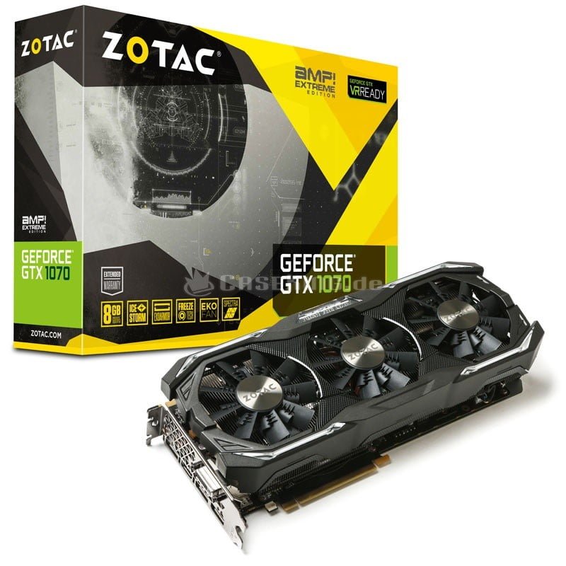 و به عنوان آخرین انتخاب این مشاوره خرید، کارت گرافیک کم نظیر ZOTAC GTX 1070 AMP! Extreme را در نظر گرفته ایم. به طور کلی کارت گرافیک های ZOTAC همواره در زمره برترین ها قرار دارند. این محصول سیستم خنک کننده IceStorm را به همراه دارد. بکارگیری سه فن 90 میلیمتری EKO با قدرت کولینگ بالا، تولید نویز صوتی اندک و پره های دوگانه برای پرتاب مستقیم هوای خنک به سمت سیستم از جمله ویژگی های آن برشمرده می شود. سیستم نورپردازی SPECTRA نیز برای کاربران خوش ذوق در نظر گرفته شده است. تکنولوژی PowerBoost در این کارت گرافیک ها با بکارگیری سیستم هوشمند میزان نویز و نوسانات الکتریکی را تا حد ممکن کاهش می دهد. 8 گیگابایت حافظه GDDR5 با فرکانس اورکلاک شده تا 8208 مگاهرتز و دو ورودی 8 پین تغذیه در کنار فرکانس 1632~1835 مگاهرتز از جمله دیگر مشخصات این کارت گرافیک است. ZOTAC GTX 1070 AMP! Extreme در بازار داخلی ایران با قیمتی در حدود 2 میلیون و 200 هزار تومان عرضه می گردد.