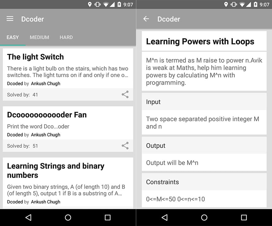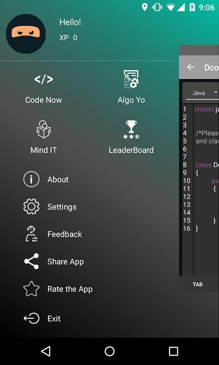 با کشیدن نوار منویی از سمت چپ می توانید به امکانات دیگر این اپلیکیشن دسترسی پیدا کنید. برای مثال می توانید وارد بخش Algo Yo شوید و الگوریتم های مختلف را در سطح های مختلف انتخاب کرده و آنها را حل کنید. اگر بتوانید تمرین های مختلف را حل کنید امتیازی بدست خواهید آورد و در نهایت افرادی که بیشترین امتیاز را کسب کنند در لیستی در بخش LeaderBoard معرفی خواهند شد که این موضوع باعث ایجاد رقابت بین کاربران خواهد شد.