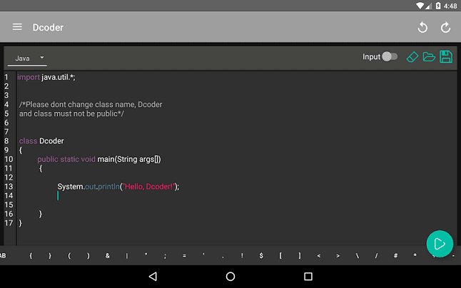 Dcoder یک IDE کدنویسی گوشی های موبایل است که در آن می توان به یادگیری، استفاده از الگوریتم های مختلف و حل تمارین پرداخت. در واقع با استفاده از ویرایش و تدوین کدها و الگوریتم ها می توانید مهارت برنامه نویسی را در خود افزایش دهید و در هر مکان و هر زمانی به یادگیری بپردازید. این اپلیکیشن به دلیل تجربه ی خاص و منحصر به فرد، ارائه ی زبان های مختلف در یک پکیج کوچک و قدرت آموزش بالا به عنوان یکی از بهترین ها شناخته شده است. از سوی دیگر Dcoder سریع ترین کامپایلر کد برای دستگاه های تلفن همراه است. همچنین با پشتیبانی از بیش از 13 زبان برنامه نویسی و دارا بودن ویرایشگر Rich Code، تجربه بسیار منحصر به فردی را برای کاربران و علاقه مندان ایجاد خواهد کرد.