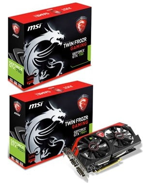 کمپانی MSI نیز با استفاده از خنک کننده TwinFrzor Gaming به استقبال کارت گرافیک GTX 750 Ti رفته است که در فرکانس 1085 مگاهرتز فعالیت می کند. تعداد هسته های پردازشی CUDA در این کارت 640 هسته است.