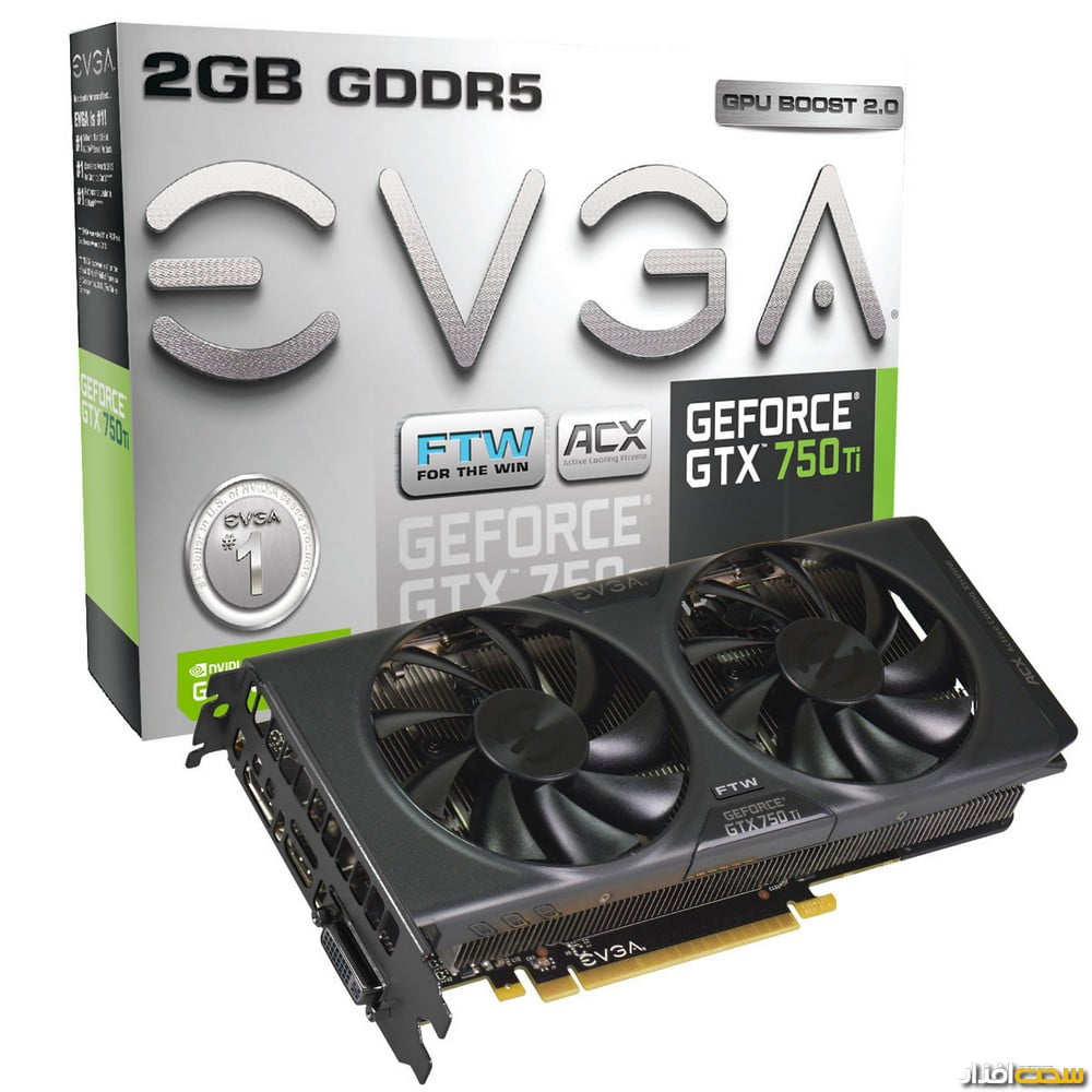 کمپانی EVGA نیز بار دیگر با بیشترین تنوع ممکن و در نظر گرفتن سه کارت GTX 750 Ti با فرکانس هسته 1020 در حالت استاندارد، 1085 در حالت بوست و فرکانس حافظه 1253 مگاهرتز، کارت گرافیک GTX 750 Ti SuperClock با فرکانس هسته 1176 در حالت استاندارد، 1255 در حالت بوست و فرکانس حافظه 1253 مگاهرتز و در نهایت با کارت گرافیک GTX 750 Ti FTW با فرکانس هسته 1189 در حالت استاندارد، 1268 مگاهرتز در حالت بوست و فرکانس حافظه 1253 مگاهرتز در بازار حضور خواهد یافت. قیمت مدل پایه کارت GTX 750 Ti برابر با 120 دلار تعیین گردیده که در مدل FTW به 170 دلار افزایش می یابد.