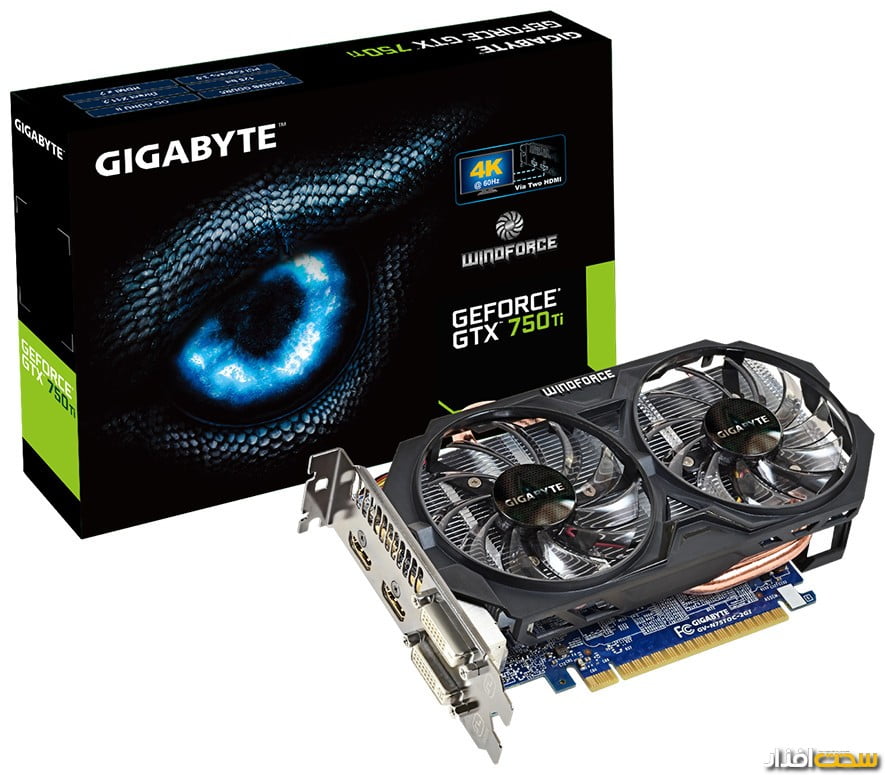 گیگابایت با استفاده از خنک کننده WindForce 2X به استقبال کارت گرافیک GTX 750 Ti رفته که در فرکانس 1033 مگاهرتز در حالت استاندارد و 1111 مگاهرتز در حالت بوست فعالیت می کند.