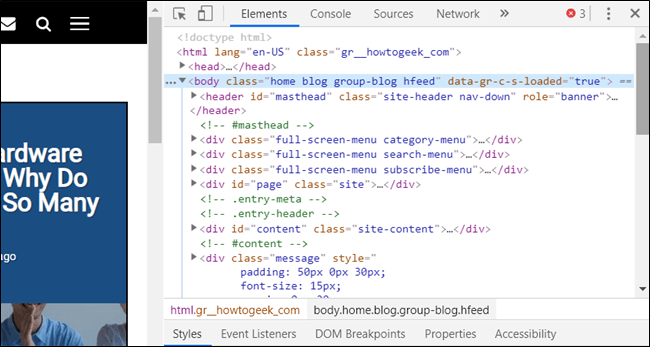 در مرحله بعد برای استفاده از ابزارهای برنامه نویسی و توسعه دهندگان باید به سایت مورد نظر بروید و کلید های Ctrl+Shift+i را فشار دهید تا یک صفحه مستطیلی شکل در کنار صفحه وبتان باز شود.