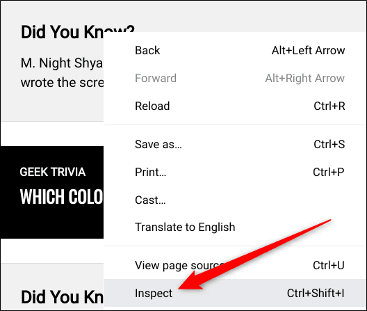 اگر نمی خواهید تا کدهای کامل صفحه را به صورت پیش فرض ببینید و فقط به دنبال بخش خاصی از کدها هستید می توانید در یک فضای خالی مورد نظر در سایت مورد نظرتان کلیک راست کنید و گزینه Inspect را انتخاب نمایید.