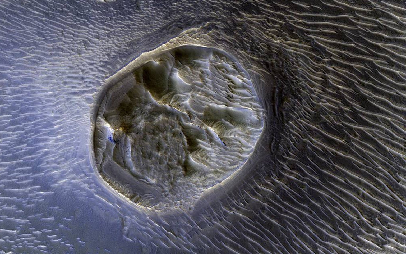 این تپه در والس مارینریس در مریخ واقع شده است و شامل خوشه هایی از تخته سنگ و تپه های شنی می شود. (ناسا)