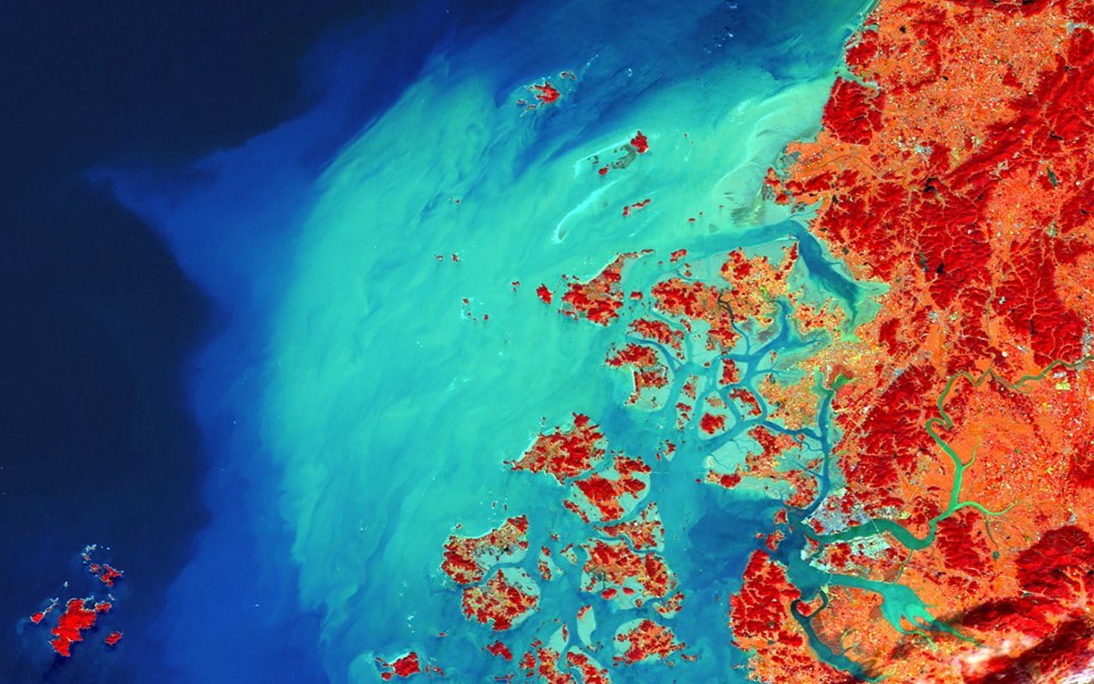 این تصویر با رنگ های مصنوعی توسط ماهواره مینی Proba-V که متعلق به ESA است و وظیفه رصد زمین را بر عهده دارد گرفته شده است و موکیو، شهرسی بندری در کره جنوبی و جزایر اطراف آن را نشان میدهد. این مینی ماهواره نقشه پوشش اراضی و گیاهی سراسر زمین را هر دو روز یکبار ترسیم میکند. (ESA)