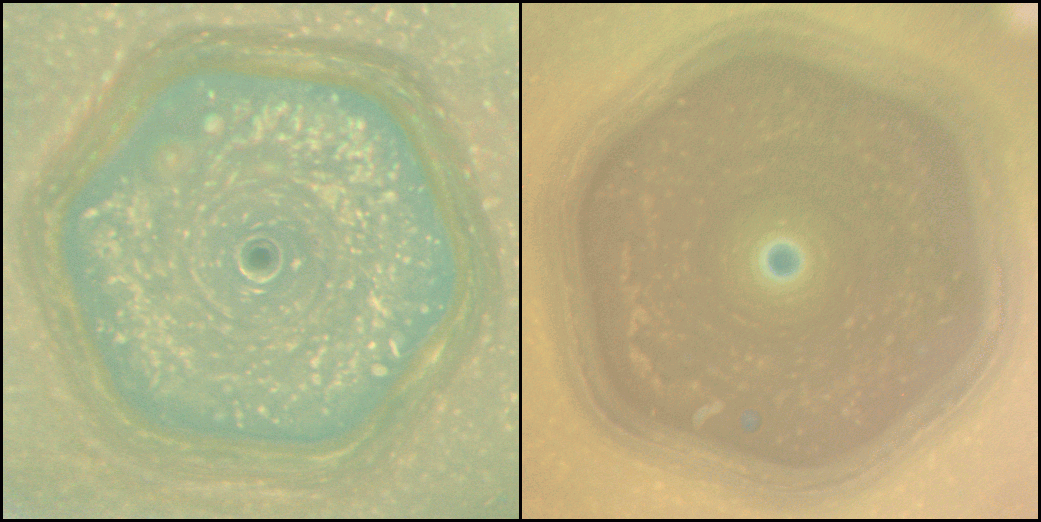 هر 35 روز یکبار، فضاپیمای جونو در سفر 2 ساعتهی خود سراسر قطب شمال و جنوب مشتری را می پیماید. مجموعه این 14 عکس که رنگ آنها بصورت مصنوعی افزایش یافته است، نتایج این سفرها را نشان میدهد. (ناسا)