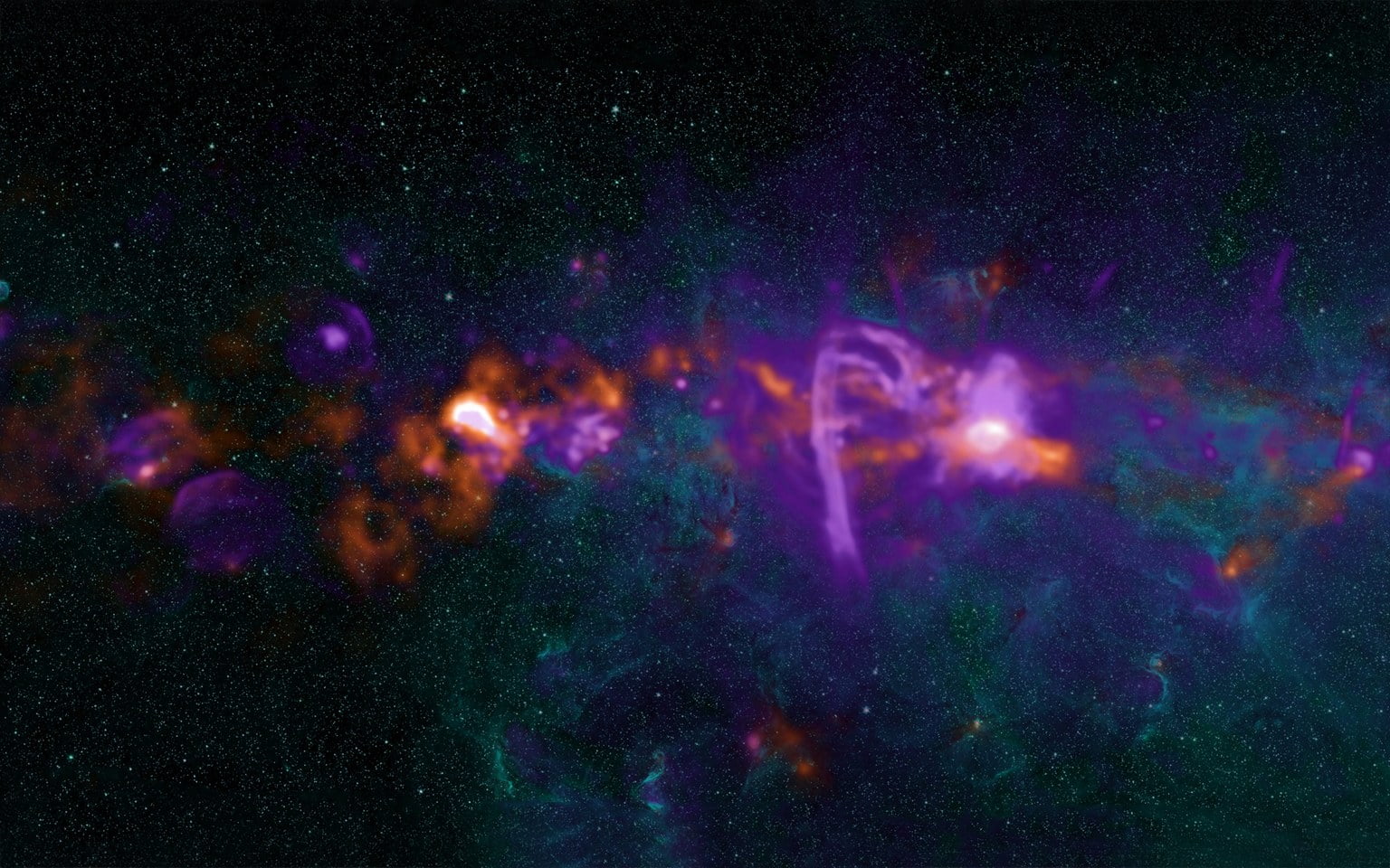 در مرکز کهکشان، یک جسم آسمانی به نام کمان آ استار (Sagittarius A*) که مشابه یک سیاه چاله ایست که جرم آن چهار میلیون برابر جرم خورشید است. (عکس از NRAO: رصدخانه اخترشناسی رادیویی ملی)
