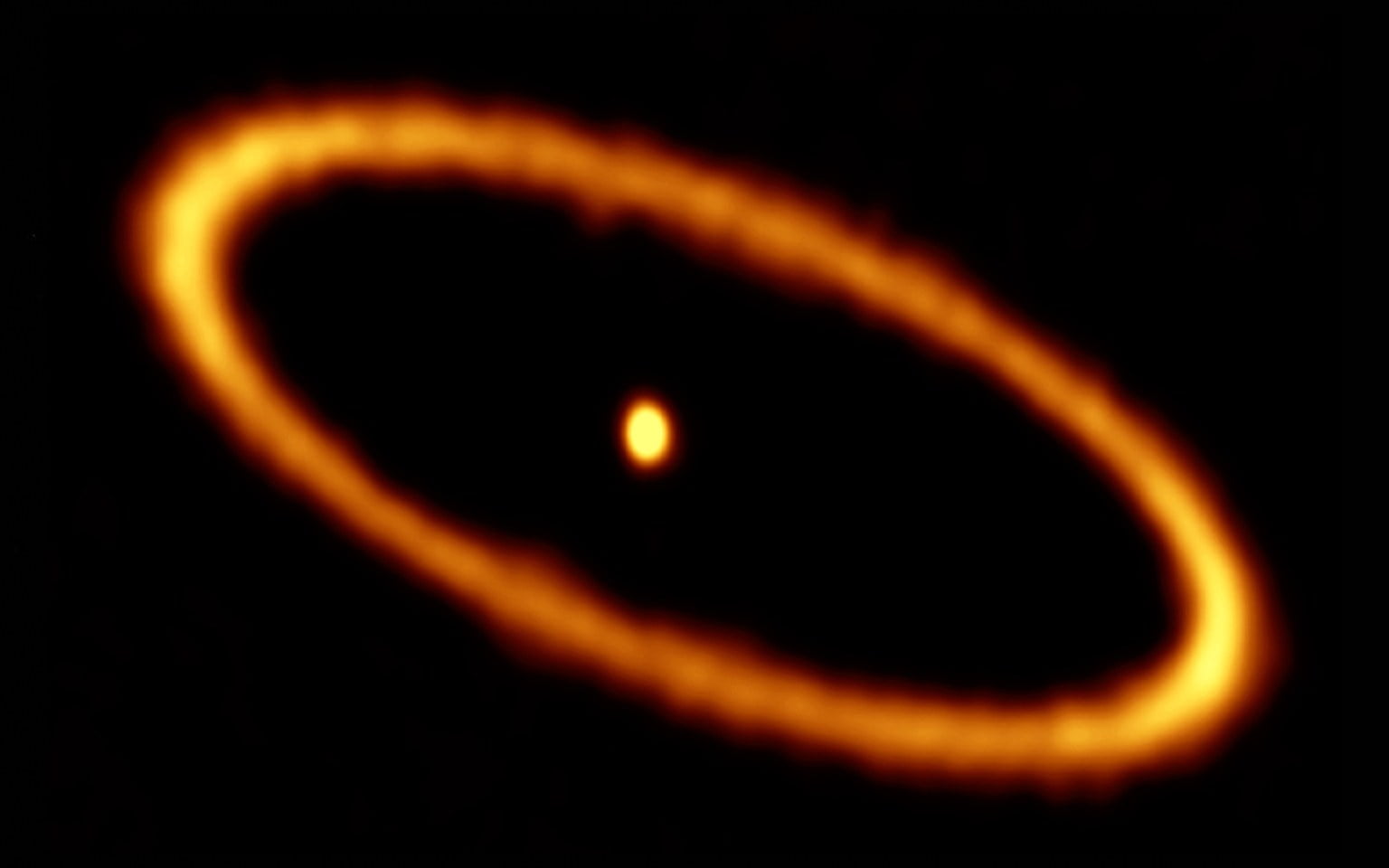 ستاره در مرکز این تصویر فلم الحوت (Fomalhaut) است که توسط دیسک هایی از غبار کیهانی و گازهای دنباله دارها احاطه شده است. این ستاره در صورت ماهی جنوبی که تنها 25 سال نوری از زمین فاصله دارد قابل مشاهده است و جالب است بدانید که یکی از درخشان ترین ستاره ها در آسمان است. (آلما)