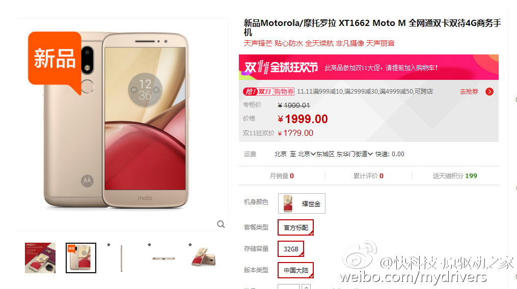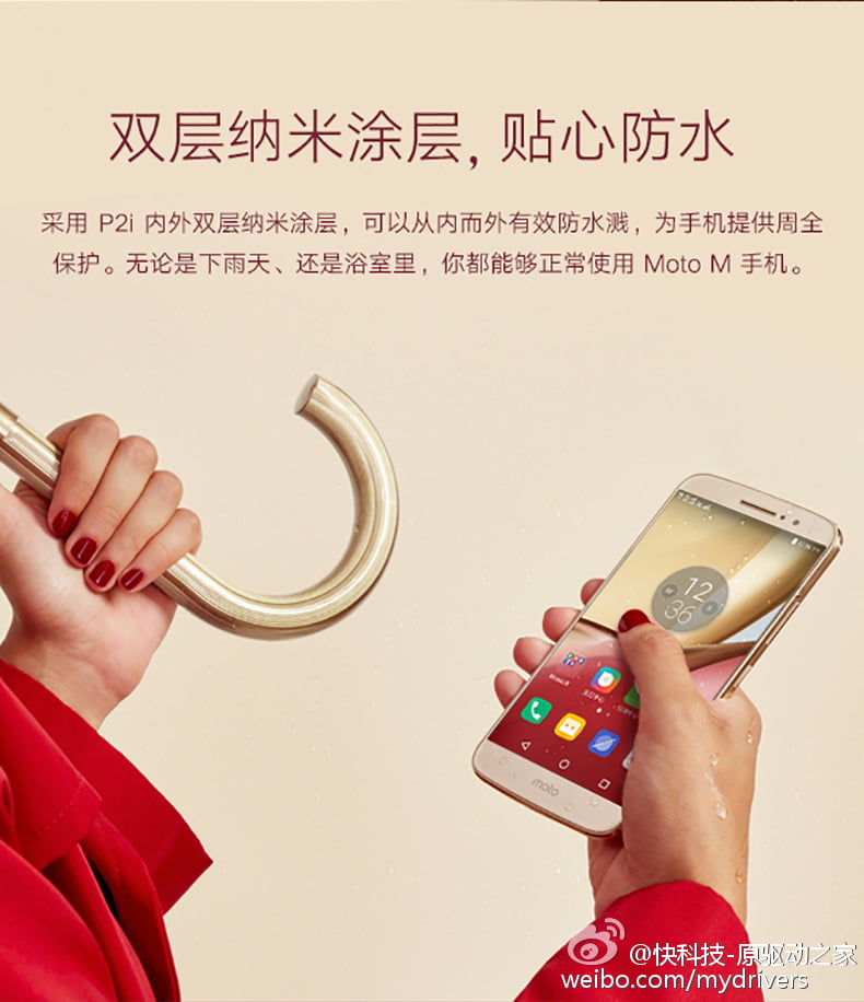 نام میان رده ی جدید موتورولا، Moto M است که رسما در چین معرفی شده است و در وب سایت Tmall، با قیمت 1999 یوان، معادل 295 دلار درج شده است. این هوشمند به صفحه نمایش 5.5 اینچی با رزولوشن فول اچ دی مجهز شده است. بر خلاف اکثر گوشی های موتورولا که معمولا به چیپست های کوالکام مجهز هستند، در این گوشی از چیپست مدیاتک Helio P15 استفاده شده که از هشت هسته ی پردازشی با فرکانس 2.2 گیگاهرتز تشکیل شده است. از نقاظ قوت این گوشی میان رده، حافظه ی رم 4 گیگابایتی آن است که بیشتر پرچمداران امروزی به این مقدار رم مجهز هستند. بخش حافظه ی دستگاه با فضای ذخیره سازی 32 گیگابایتی آن تکمیل میشود.