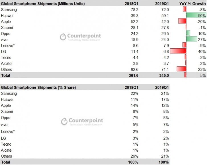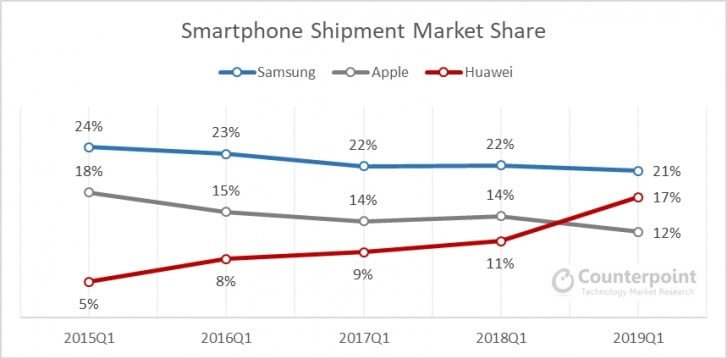 سه ماهه پایانی سال 2019 به پایان رسیده است و موسسه تحقیقاتی Counterpoint گزارشات سه ماهه خود را در خصوص وضعیت فروش گوشیهای هوشمند در بازار منتشر کرده است. نکته جالب در رابطه با این گزارش تصاحب بخش بزرگی از بازار توسط هوآوی است که موفق شده بیشترین سهم از بازار را در طول تاریخ فروش گوشیهای هوشمند خود با 17 درصد تصاحب کند. البته میزان فروش کل بازار 345 میلیون دستگاه در بازار بوده است که 5 درصد کمتر از مدت مشابه در سال قبل میباشد. دلیل این موضوع هم کاهشی است به طور کلی در بازار فروش گوشیهای هوشمند شاهد آن هستیم.