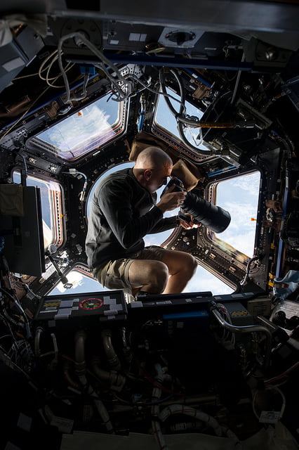 عکاس فضانورد به نام Chris Cassidy در حال گرفتن تصاویر از کره زمین