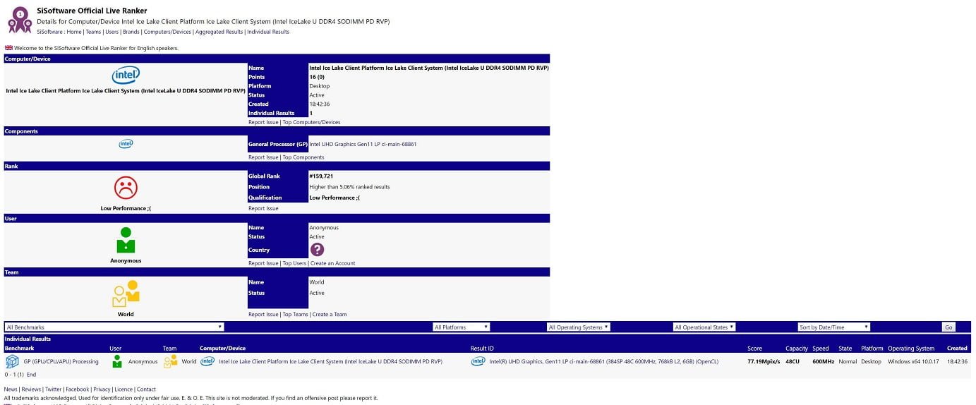 پایگاه داده جنجالی SiSoft SANDR بازهم خبر ساز شده است؛ این پایگاه داده اطلاعاتی را از یک iGPU اینتل منتشر کرده است که به طور خاص به پلتفرم Ice Lake و پردازنده های سری U باز می گردد. پلتفرم های Coffee Lake و Kaby Lake از معماری گرافیکی نسل 9.5 اینتل بهره می برند و اینک این شرکت خود را برای معرفی معماری جدید 11.0 iGPU آماده کرده است.