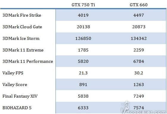 کارت گرافیک GTX 750 Ti بین دو کارت GTX 650 Ti Boost و GTX 660 قرار می گیرد و در حقیقت 10 تا 15 درصد ضعیف تر از GTX 660 عمل می کند. البته این مورد را می توان به دلیل استفاده از درایورهای موجود که به طور اختصاصی برای پردازنده گرافیکی و فناوری های جدید انویدیا طراحی نگردیده اند، بر شمرد. اختلاف بین کارت گرافیک GTX 750 Ti و GTX 660 تاحدودی نگران کننده است.
