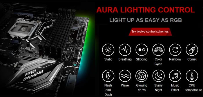 از جمله مهمترین تغییرات در نسخه جدید Z170 Pro Gaming می توان به Aura LED و البته 3D-printing اشاره کرد.این مادربرد می تواند هاله های نورانی RGB را در اطراف خود ایجاد نماید.به مانند آنچه که انتظار می رفت،یک نرم افزار اختصاصی مدیریت این فناوری را به دستان کاربر می سپارد.
