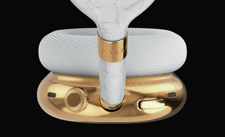 قبل از هر چیز باید خاطرنشان کنیم که این نسخه از هدفون اپل توسط خرده فروشی Caviar به فروش میرسد وAirPods Max سفارشی 108،000 دلاری را در دو رنگ سیاه و سفید ارائه میدهد. Caviar ادعا میکند که گوشیهای این هدفون از 750 گرم طلای خالص ساخته شده است در حالی که نسخه اصلی آن از آلومینیوم ساخته شده است. مش هدبند این محصول نیز با “چرم تمساح سفید” که بسیار هم نادر است، جایگزین شده است.
